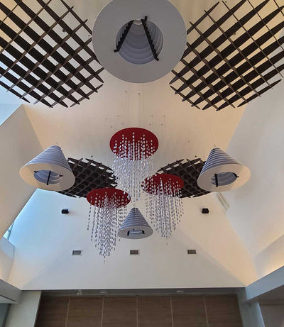 We replaced some designer proposed acoustic light fixtures and saved thousands of dollars by combining these clouds with lower cost pendant lights. The end result was fantastic. Even the designers liked them!