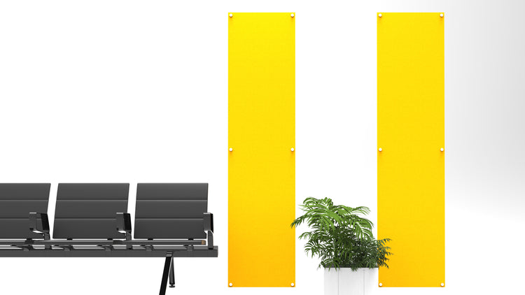 Blank is a solid sheet of acoustic felt panel. Wall-mounted with standoffs, it dampens sound echo and reduces reverberation.