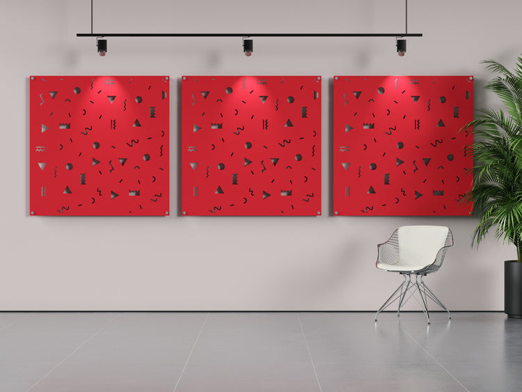 Confetti is an acoustic panel made with acoustical felt. It installs easily with stainless steel standoffs to reduce echo and reverb in your space.