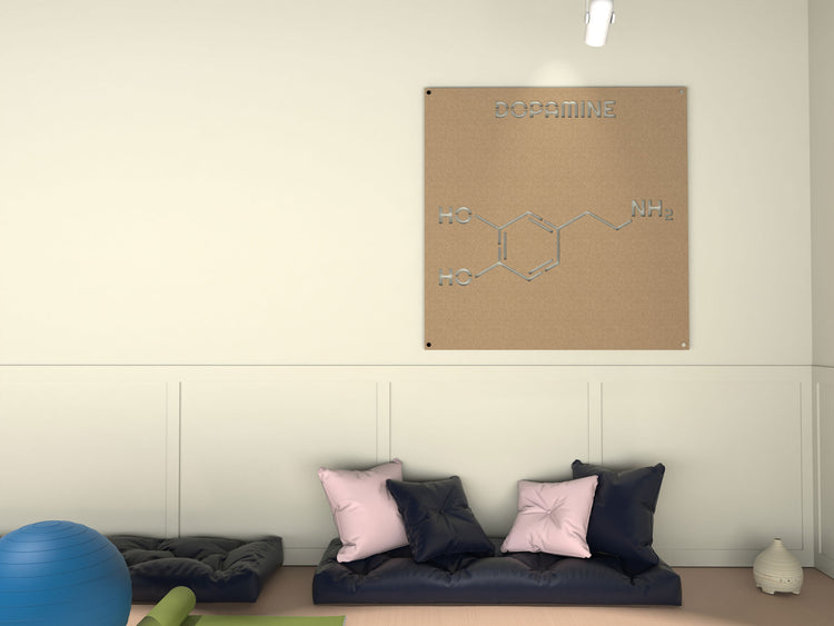 Dopamine is an acoustic panel made with acoustical felt. It installs easily with stainless steel standoffs to reduce echo and reverb in your space.