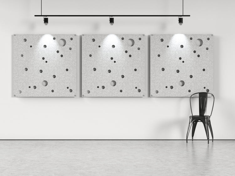 Orbs is an acoustic panel made with acoustical felt. It installs easily with stainless steel standoffs to reduce echo and reverb in your space.