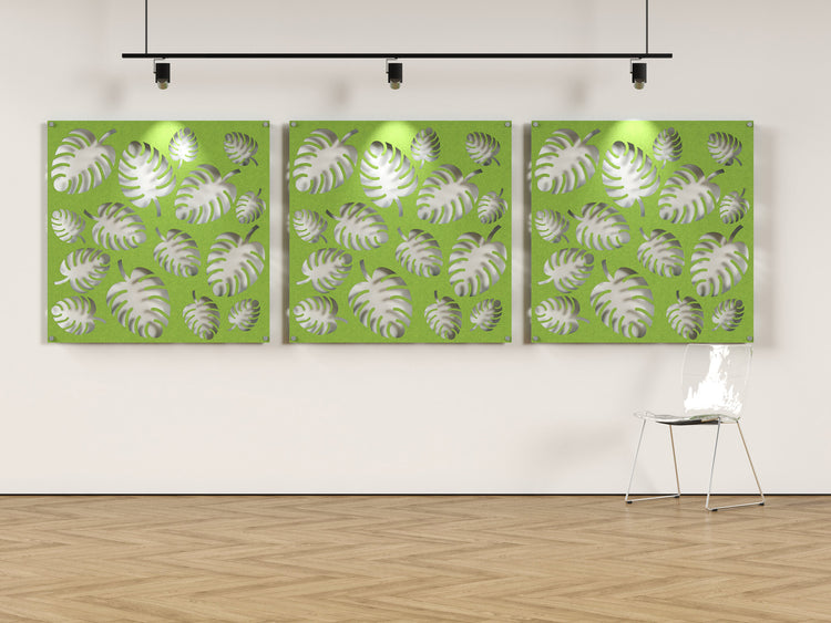 Tropical is an acoustic panel made with acoustical felt. It installs easily with stainless steel standoffs to reduce echo and reverb in your space.