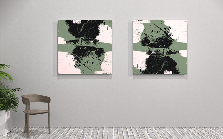 This 4x4 printed acoustic panel features abstract art in military green and black. The art is printed on acoustic felt to reduce echo and reverb in your space.