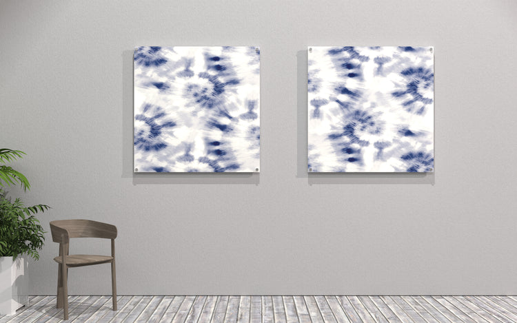 This 4x4 printed acoustic panel features a deep blue abstract art with spirals. The art is printed on acoustic felt to reduce echo and reverb in your space.