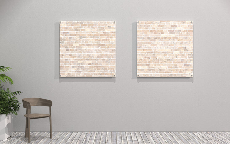 This 4x4 printed acoustic panel features a beige and tan brick wall design. The design is printed on white acoustic felt to reduce echo and reverb in your space.