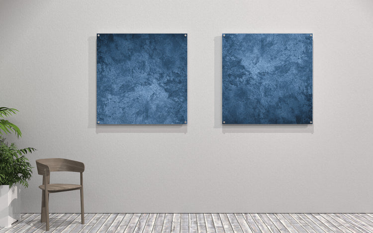 This 4x4 printed acoustic panel features a venetian blue fabric design. The design is printed on white acoustic felt to reduce echo and reverb in your space.