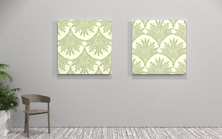 This 4x4 printed acoustic panel features green vines on a light green background. The design is printed on white acoustic felt to reduce echo in your space.