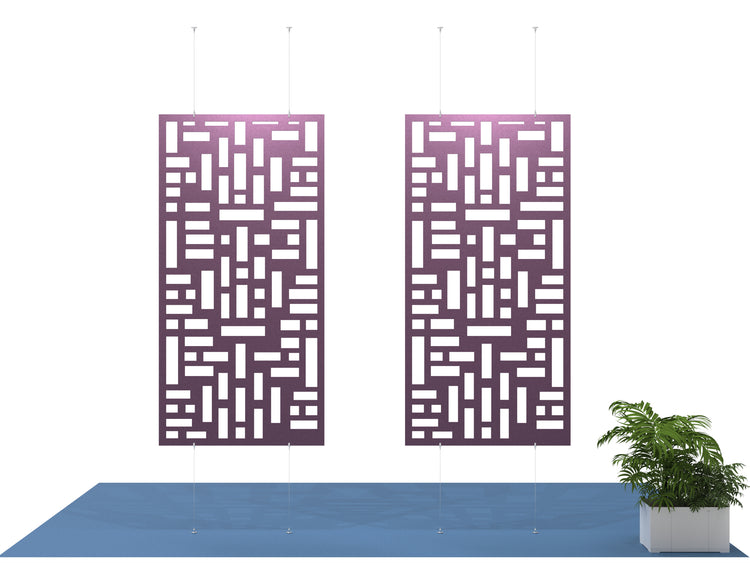 Arcade is constructed with acoustic felt to reduce echo and provide privacy in open spaces. The divider suspends from the ceiling and can be optionally fastened to the floor.