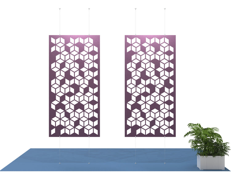 Cube Steps is constructed with acoustic felt to reduce echo and provide privacy in open spaces. The divider suspends from the ceiling and can be optionally fastened to the floor.