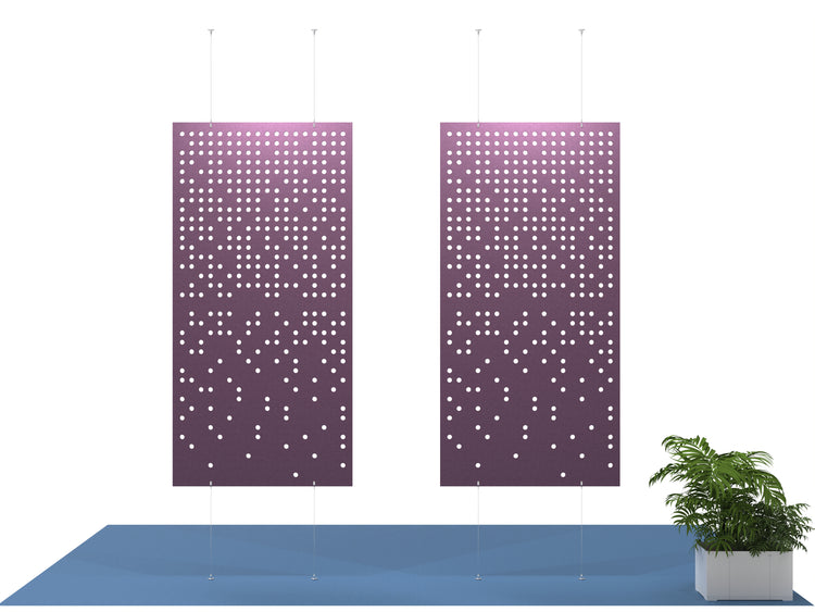 Fading Circles is constructed with acoustic felt to reduce echo and provide privacy in open spaces. The divider suspends from the ceiling and can be optionally fastened to the floor.