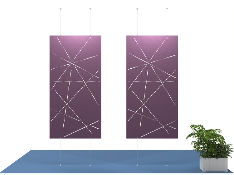 Light Show is constructed with acoustic felt to reduce echo and provide privacy in open spaces. The divider suspends from the ceiling and can be optionally fastened to the floor.