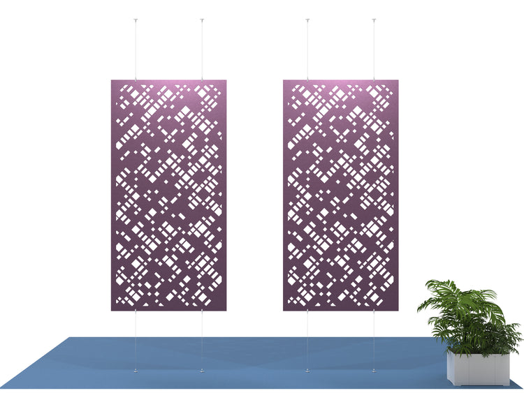 Urbanscape is constructed with acoustic felt to reduce echo and provide privacy in open spaces. The divider suspends from the ceiling and can be optionally fastened to the floor.