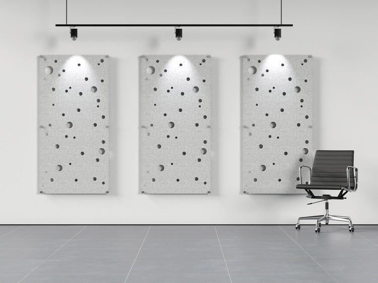 Light Show is an acoustic felt panel with cutouts that resemble laser lights. Mount this 4x8 panel with standoffs to reduce echo and reverb in your space.