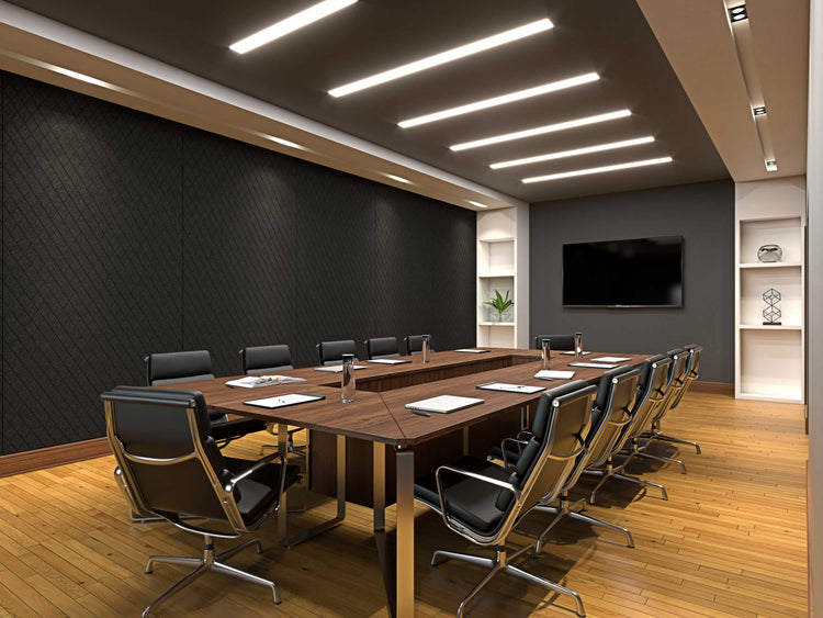 4x9 Criss Cross offers complete coverage to most 9' interior walls. The etched acoustic felt reduces echo and reverberation from hard surfaces.