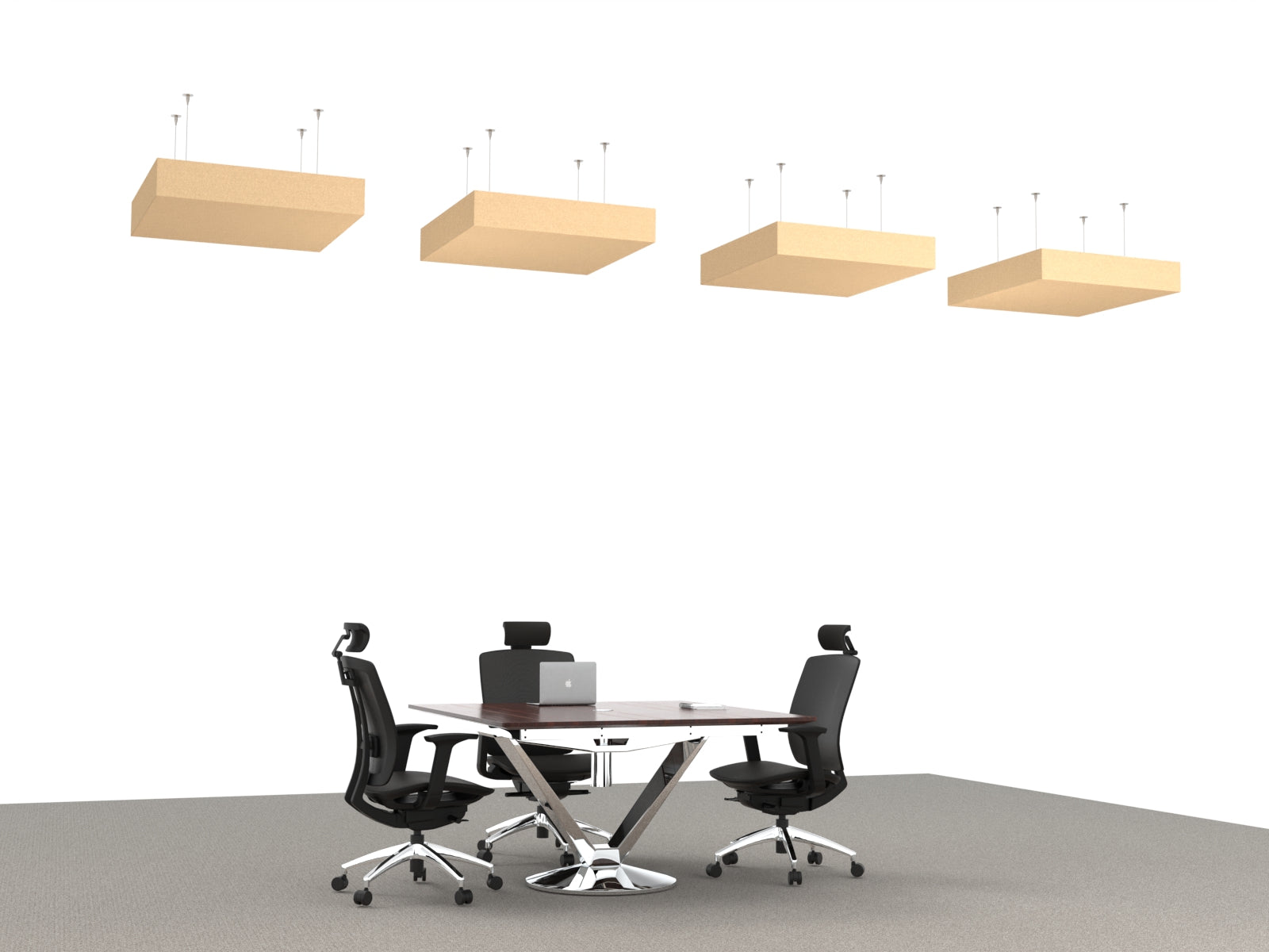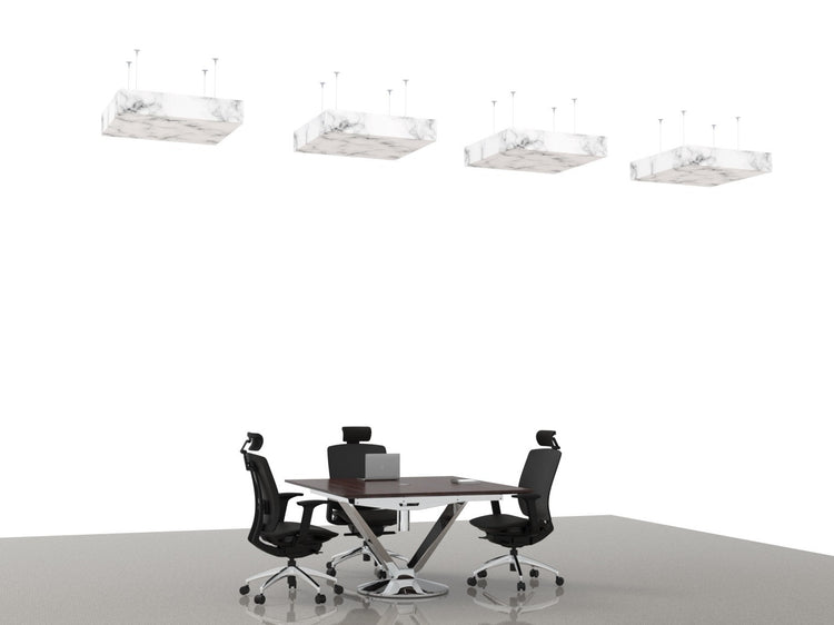 This 6" tall, 32"x32" square box cloud is constructed with acoustic felt. Mount to ceilings to absorb echo and dampen reverb in open spaces.