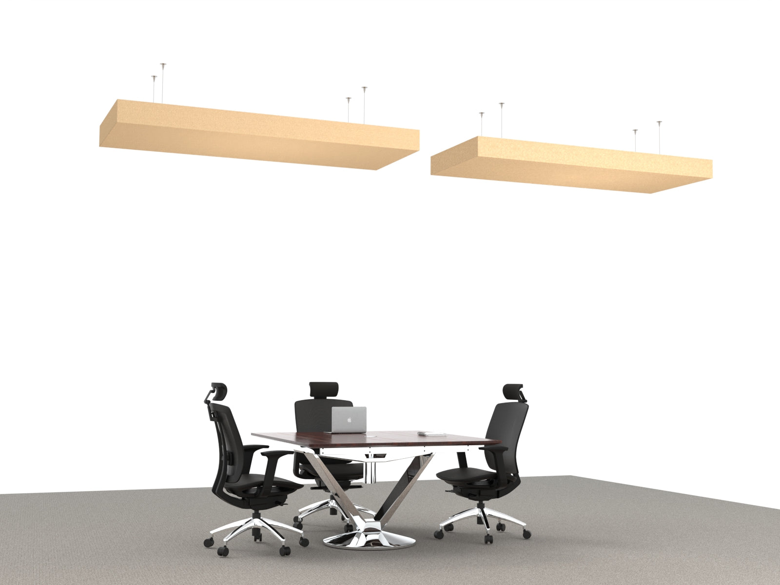 This 6" tall, 82"x32" rectangular box cloud is constructed with acoustic felt. Mount to ceilings to absorb echo and reverb in open spaces.