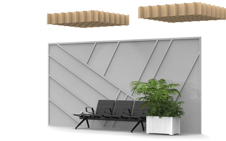 This 12" x 71" x 71" ceiling grid contains 14 acoustic felt panels that interlock with each other. Install onto ceilings to absorb echo and reduce reverberation.