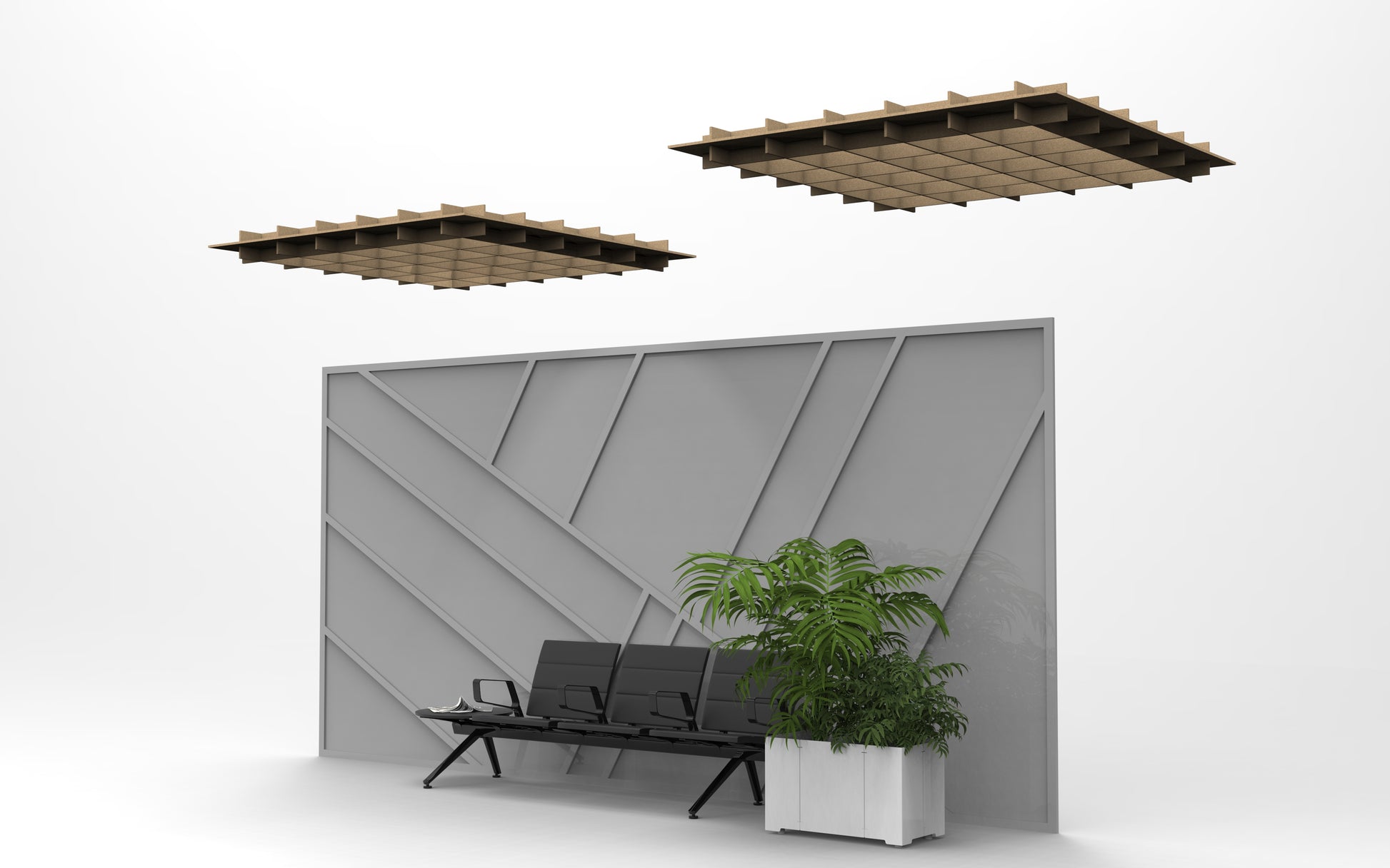 This 6" x 70.5" x 70.5" ceiling grid uses acoustic felt blades that interlock with each other to absorb echo and reverberation from ceilings.