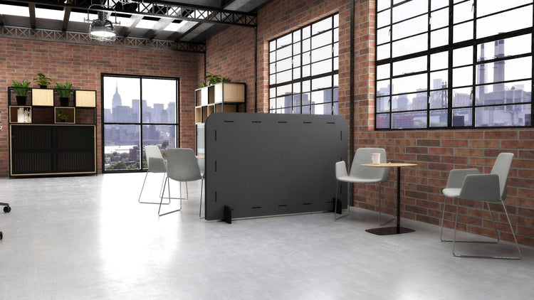 Our Double Sided Floor Partition is made from two layers of acoustic felt to create privacy and reduce sound echo in open spaces.