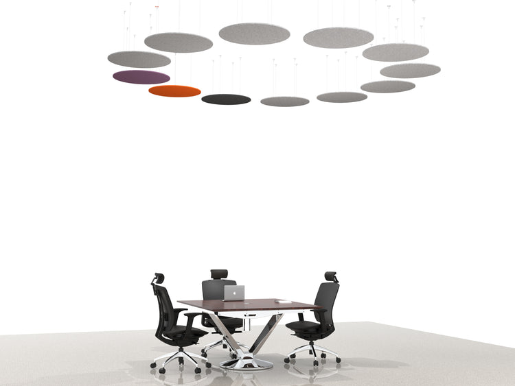 This 31" diameter Circle Cloud is made from two layers of acoustic felt. Install onto ceilings to reduce echo and dampen reverb. Price is per cloud.