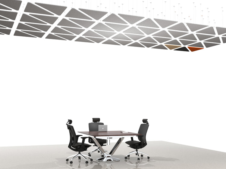 This 40" wide Triangle Cloud is made from two layers of acoustic felt. Install onto ceilings to reduce echo and dampen reverb. Price is per cloud.