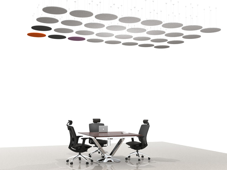 This 23" diameter Circle Cloud is made from two layers of acoustic felt. Install onto ceilings to reduce echo and dampen reverb. Price is per cloud.