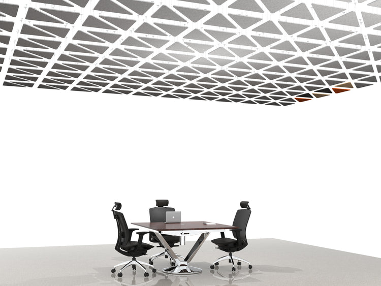 This 29-1/4" wide Triangle Cloud is made from two layers of acoustic felt. Install onto ceilings to reduce echo and dampen reverb. Price is per cloud.