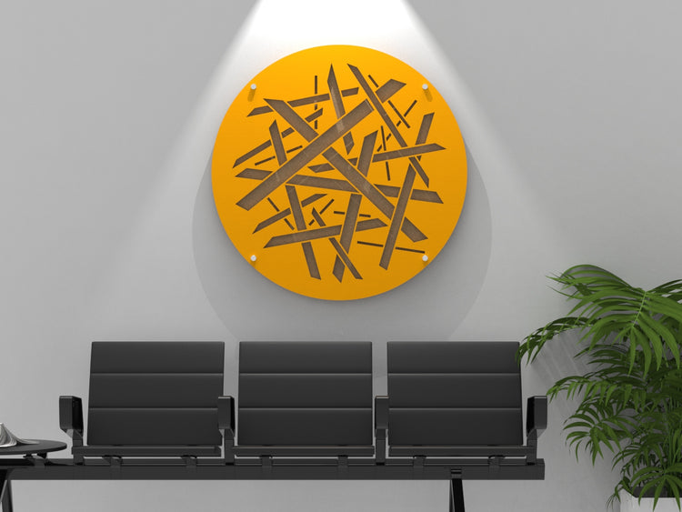 Barricade is a 47" diameter wall panel made of two layers of acoustic felt. It installs easily with standoffs to reduce unwanted sound echo and reverb.
